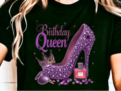 Step into your birthday like royalty with our Birthday Queen T-Shirt! This stylish and glamorous birthday shirt for women features a dazzling purple stiletto, crown, and luxury accessories, making it the perfect outfit for celebrating in style. Whether you're heading out for a birthday party, brunch, or just want to feel fabulous on your special day, this tee is a must-have!