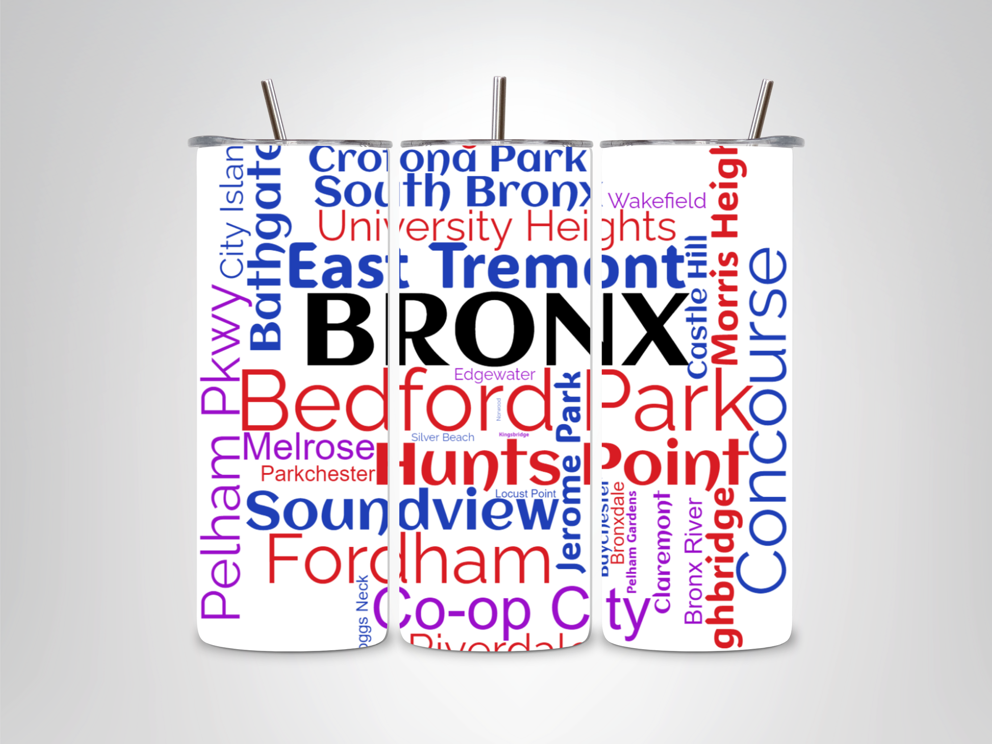 Bronx Neighborhood Tumbler - Custom NYC Word Art Drinkware Gift