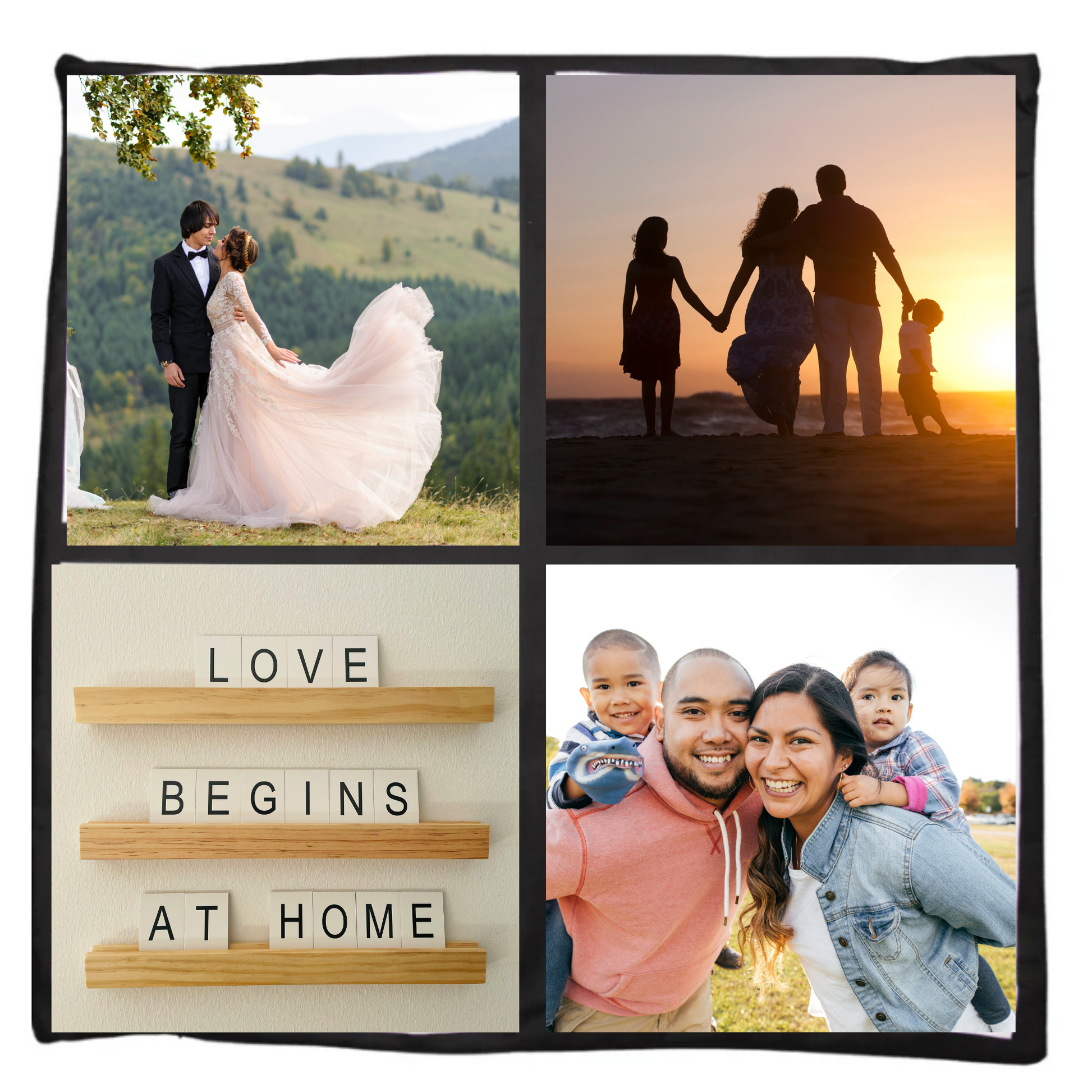 Transform your space with this plush 18-inch pillow featuring a Custom 4 Panel Pillow Case. Each 7.75 x 7.75 inch panel, bordered in elegant navy, can be personalized with your choice of four photos—whether of friends, family, or your brand. Perfect as a heartfelt gift or stylish home decor, this pillow brings your cherished moments to life while adding comfort and personality to any room.