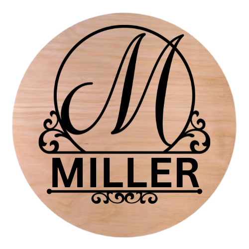 Elevate your home décor with our beautifully crafted custom wood round, designed to add a touch of elegance and personalization to any space. Each piece features a laser-cut monogram letter and last name, meticulously applied to a high-quality 12" birch wood round.